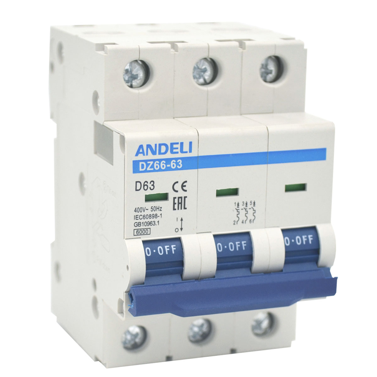 Выключатель автоматический DZ66-63/3P 6A 6kA х-ка B предназначен для защиты электрических цепей от перегрузок и токов короткого замыкания, а также для оперативного управления участками электрических цепей.