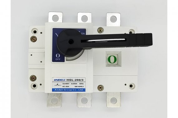 Рубильник ANDELI hgl-200a/3 ADL04-102 с ручным приводом поворотного действия, на два положения. Предназначен для коммутации электрических цепей с током до 200А.